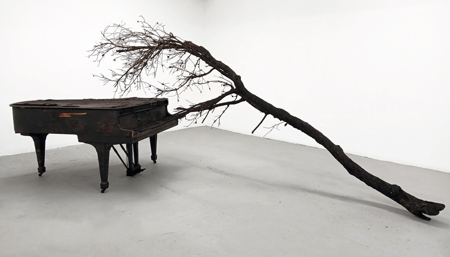La propuesta de Alexis Martínez se despliega como una travesía visual en la que lo biológico y lo inerte se entrelazan mediante metáforas precisas, revelando cómo lo aparentemente inanimado adquiere vitalidad al ser activado por la experiencia humana. Más allá del objeto, lo que interesa es su capacidad de resonancia simbólica, su inscripción en una red de sentidos que cuestiona los valores contemporáneos y sus tensiones internas. En piezas como Transfer (2024), se hace evidente una reflexión sobre la movilidad de los significados, sobre los desplazamientos –físicos, culturales, emocionales- que configuran nuestra época. Martínez logra una convivencia singular entre lirismo y rigor conceptual, donde el pensamiento no sofoca la emoción, sino que la amplifica. Así ocurre en Do Re Do (2023), donde la música y la llama se tocan en un mismo espacio sensible. Su obra propone una lectura del mundo como archivo poético, donde cada elemento es al mismo tiempo signo y presencia, crítica y evocación. Desde ahí, los objetos emergen no como residuos del cotidiano, sino como detonantes de nuevos imaginarios posibles. En este cruce entre lo real y lo simbólico, su práctica abre espacios de contemplación crítica y activa.